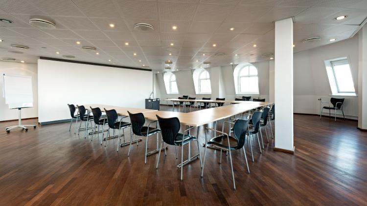 Lokalet rummer op til 25 personer ved bordopstilling og 40 ved biografopsætning. Vi tilpasser opsætningen efter jeres behov, og AV-udstyret inkluderer projektor, whiteboard og flipover. Der er adgang til private toiletter samt elevator direkte til døren.