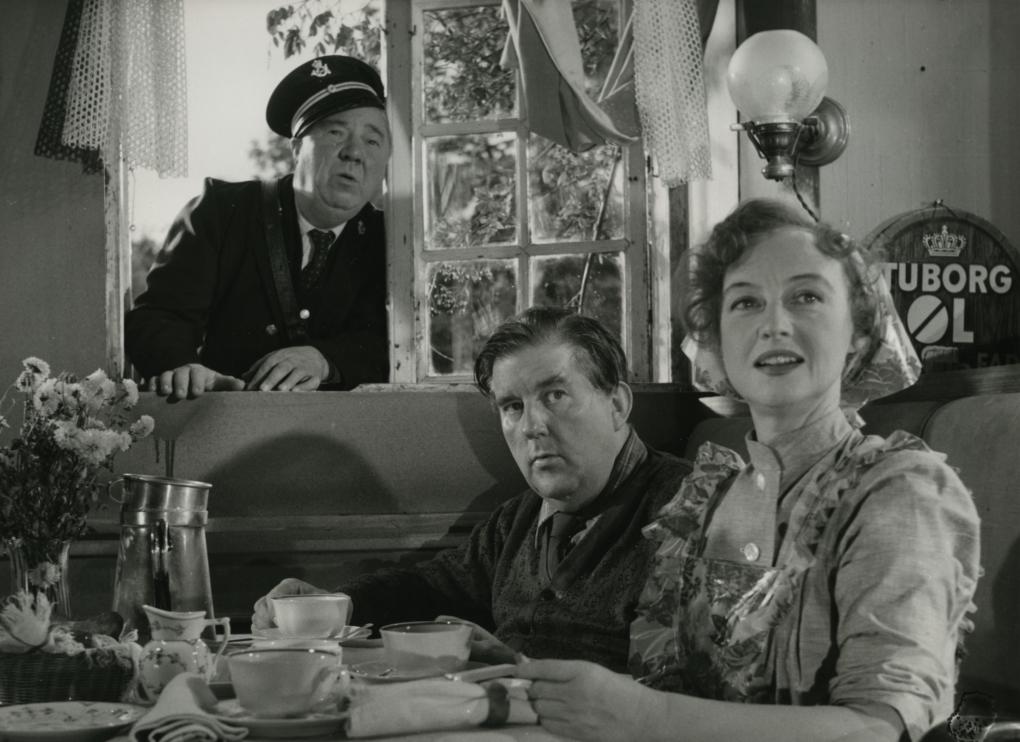 Postbuddet kigger indenfor i 'Den gamle mølle på Mols' (Annelise Reenberg, DK, 1953).