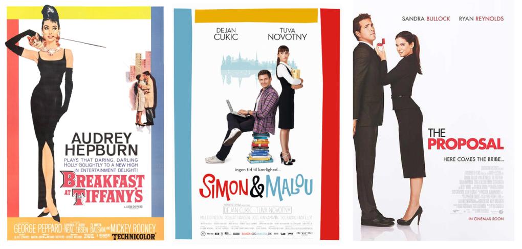 Den romantiske komedie "Simon & Malou", der har premiere fredag den 30. oktober, har valgt at lade sin filmplakat være en hyldest til Robert McGinnis' berømte design. På plakaten står hovedrolleindehaveren Tuva Novotny iført en stram sort kjole i stil med Audrey Hepburns Givenchy-model, og ligesom på originalen kan man ane den pulserende storby i baggrunden. Mest iøjefaldende er dog rammen af henholdsvis en blå, en gul og en rød farveblok.