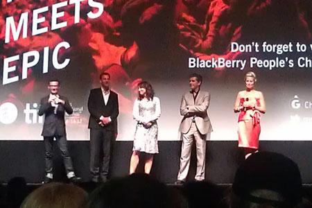 "Susanne Bier blev kaldt op foran lærredet inden visningen, og hun inviterede producer Sisse Graum Jørgensen, manusforfatter Anders Thomas Jensen og de to hovedrolleindehavere Trine Dyrholm og Pierce Brosnan på scenen. Hele salen jublede højt, da Brosnan kom ind. Bier inviterede derefter de to filmkøbmænd, Michael Barker og Tom Bernard fra Sony Pictures Classics, som har købt "Den skaldede frisør" til distribution i Nordamerika, om at dukke op på scenen, og de to stak på bedste slapstick-vis kun overkroppen ind fra siden af scenen og vinkede. Så var stemningen lagt."