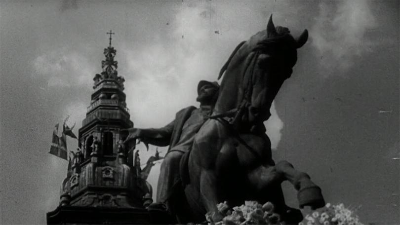 Stillbillede af Christiansborg fra filmen "Grundlovens 100 års jubilæum". Filmen kan streames på Danmarkpaafilm.dk